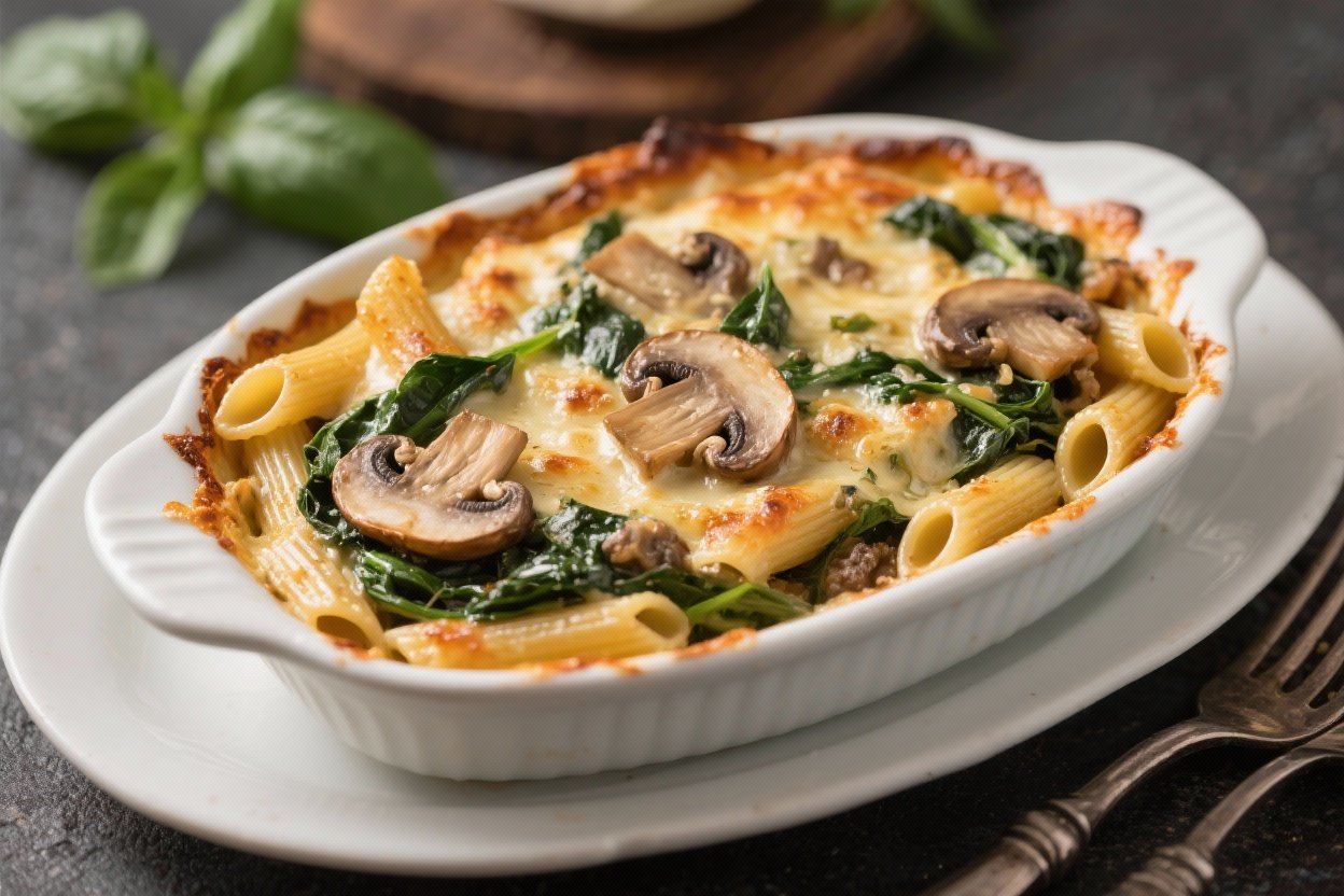 Baked Penne With Spinach & Mushrooms – A Cozy, Weeknight-Friendly Pasta