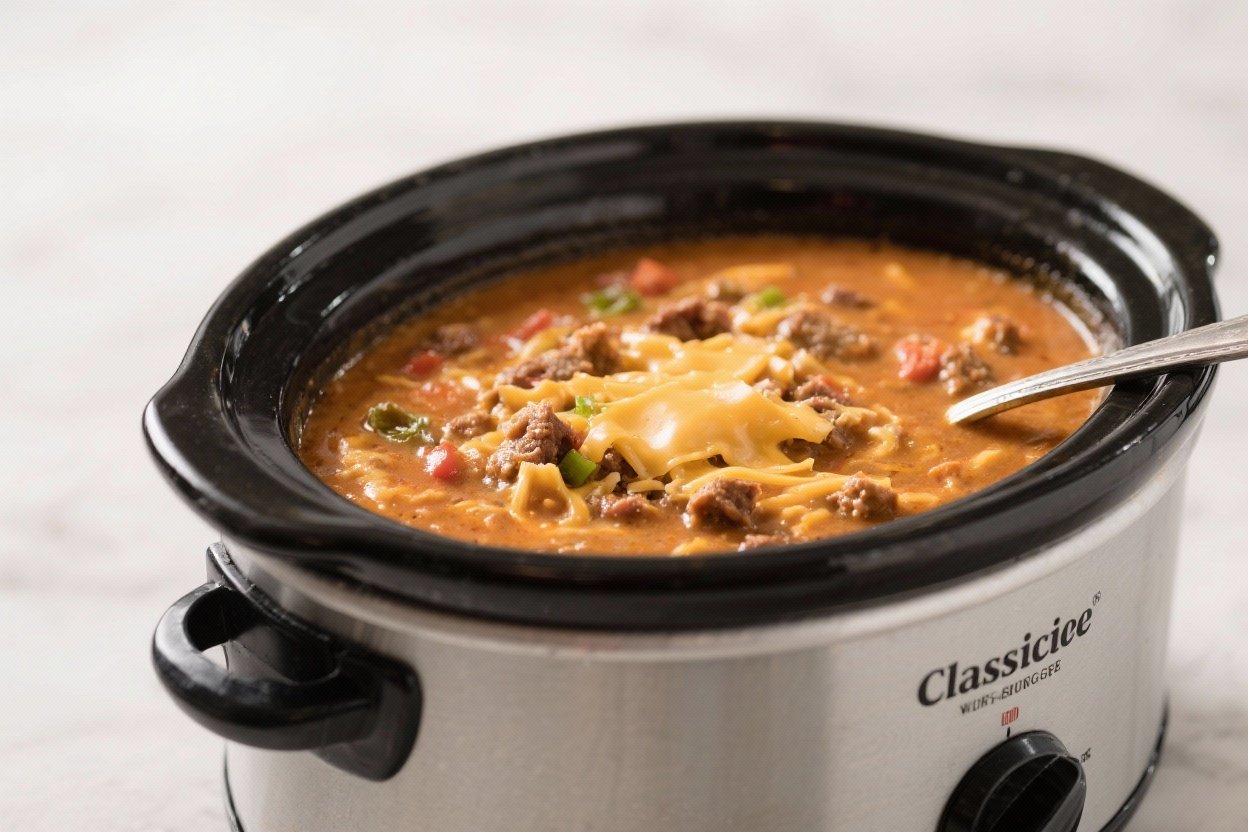Classic Crockpot Cheeseburger Soup – Cozy, Creamy, and Comforting