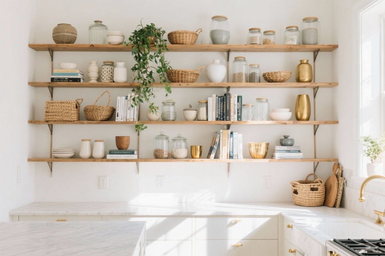 Your kitchen shelves deserve better than random mugs and dusty spices. With a few smart moves, you can turn them into a mini design moment that still works hard for everyday life.